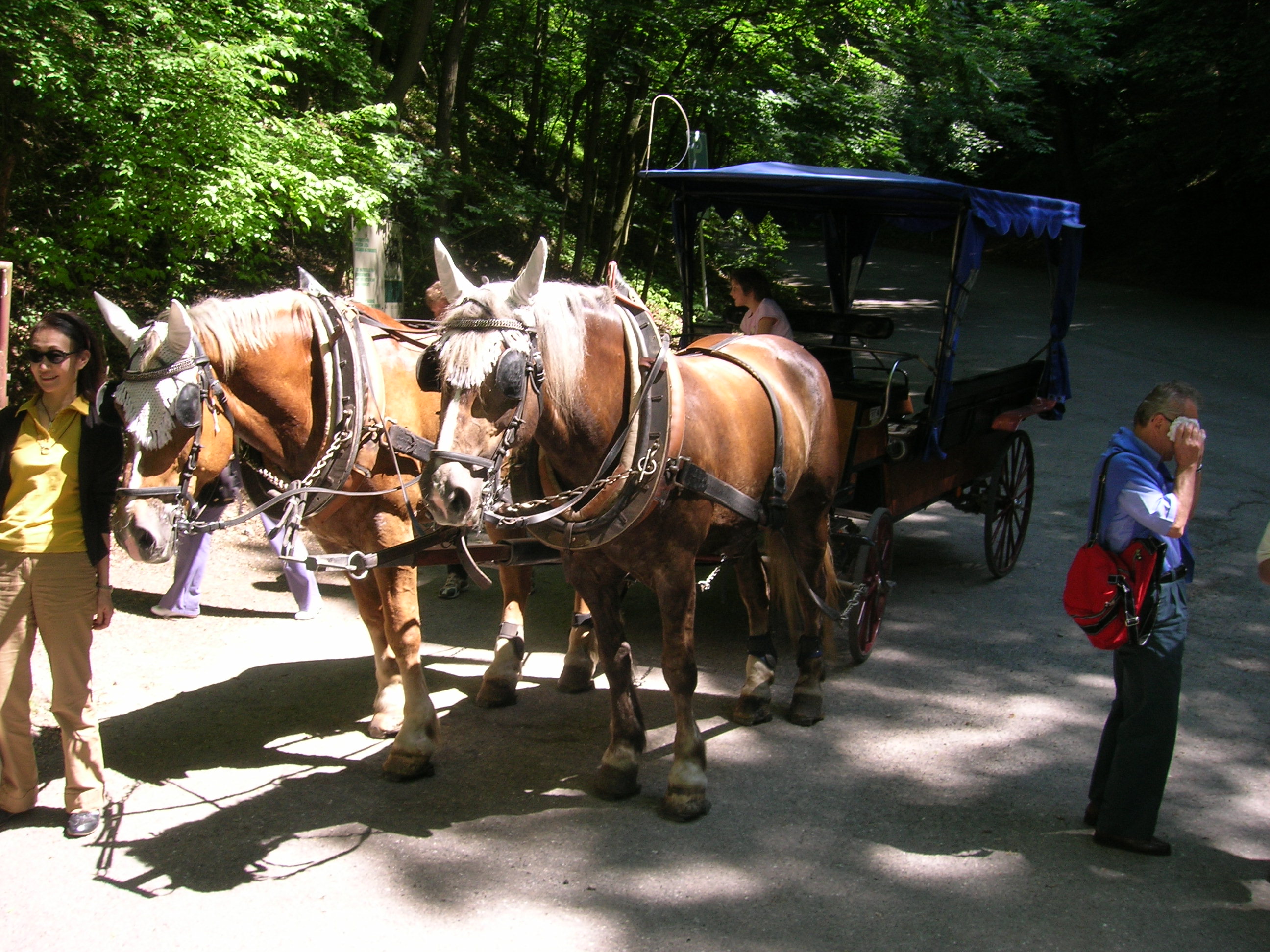 Our horse carriage that we rode up the hill to Karlshtein Castle.