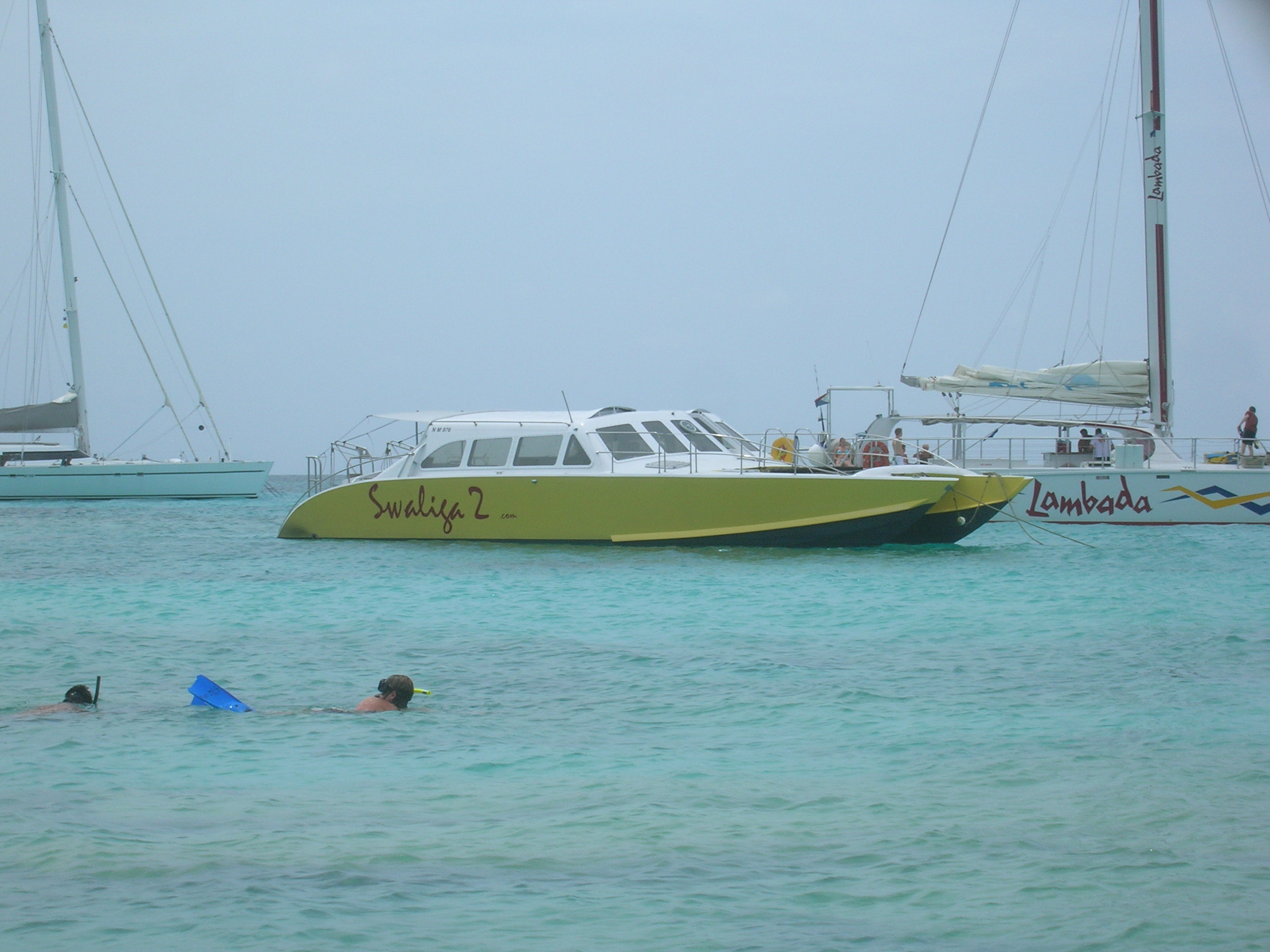 I just got back from a vacation in beautiful Dutch St. Maarten and French St. Martin as well as the British island of Anguilla. We enjoyed a sunset dinner, wine and dancing cruise on the Catamaran sailboat "Tango" and we enjoyed a super fast ride to the posh French island of St. Bart's and made several snorkelling stops near the British island of Anguilla. Below is a picture of the fast boat that whisked us away to St. Bart's and Anguilla. The boat is called "Swaliga" which was the original name of St. Martin before Christopher Columbus renamed it. "Swaliga" means salt island.