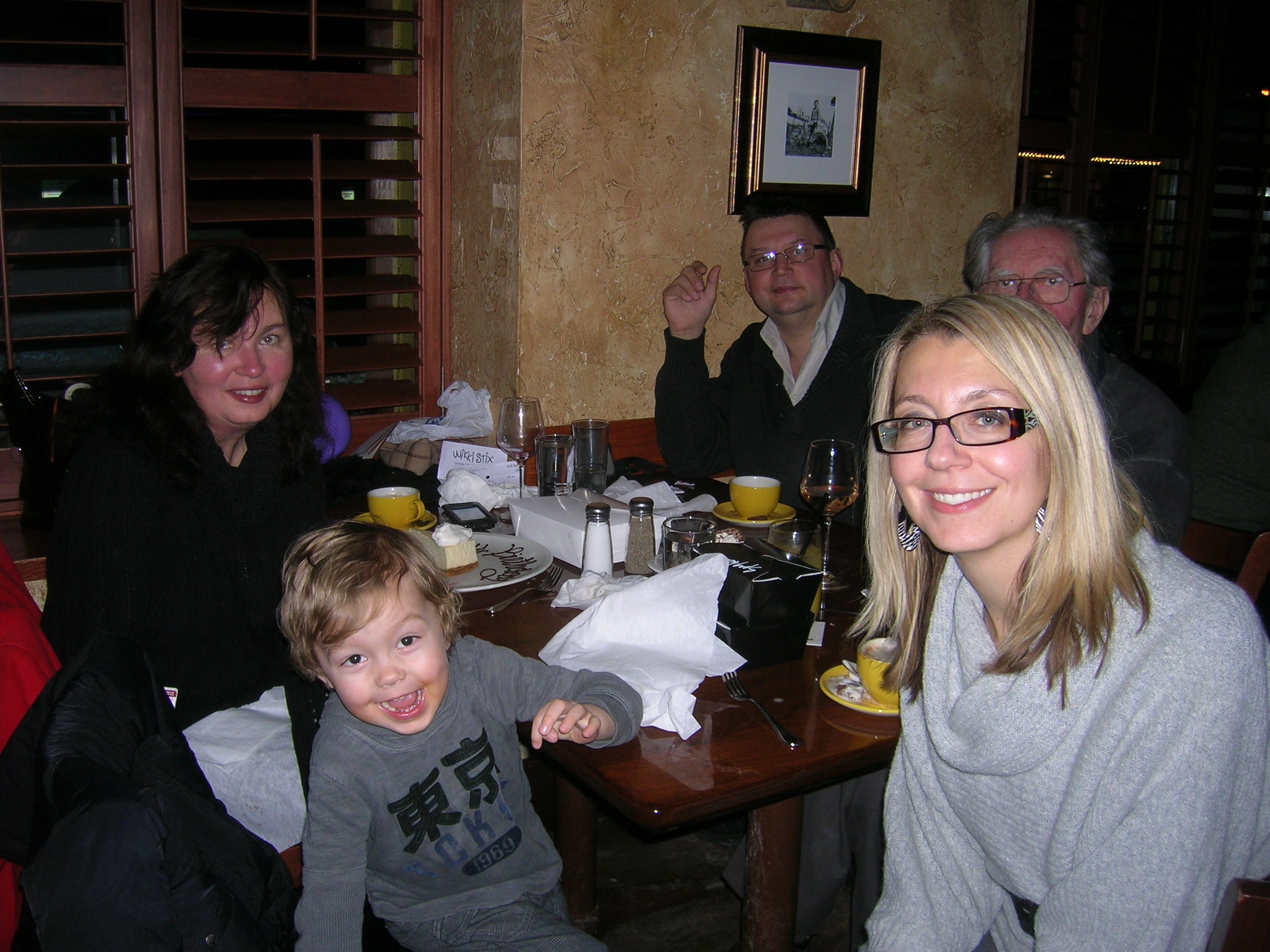 Here's a recent picture of my family at Bertoldi's Italian Restarant in London, Ontario (My Dad, my sister Zora, my sister Sandra and her son Cole and I are celebrating my sister Zora's birthday)