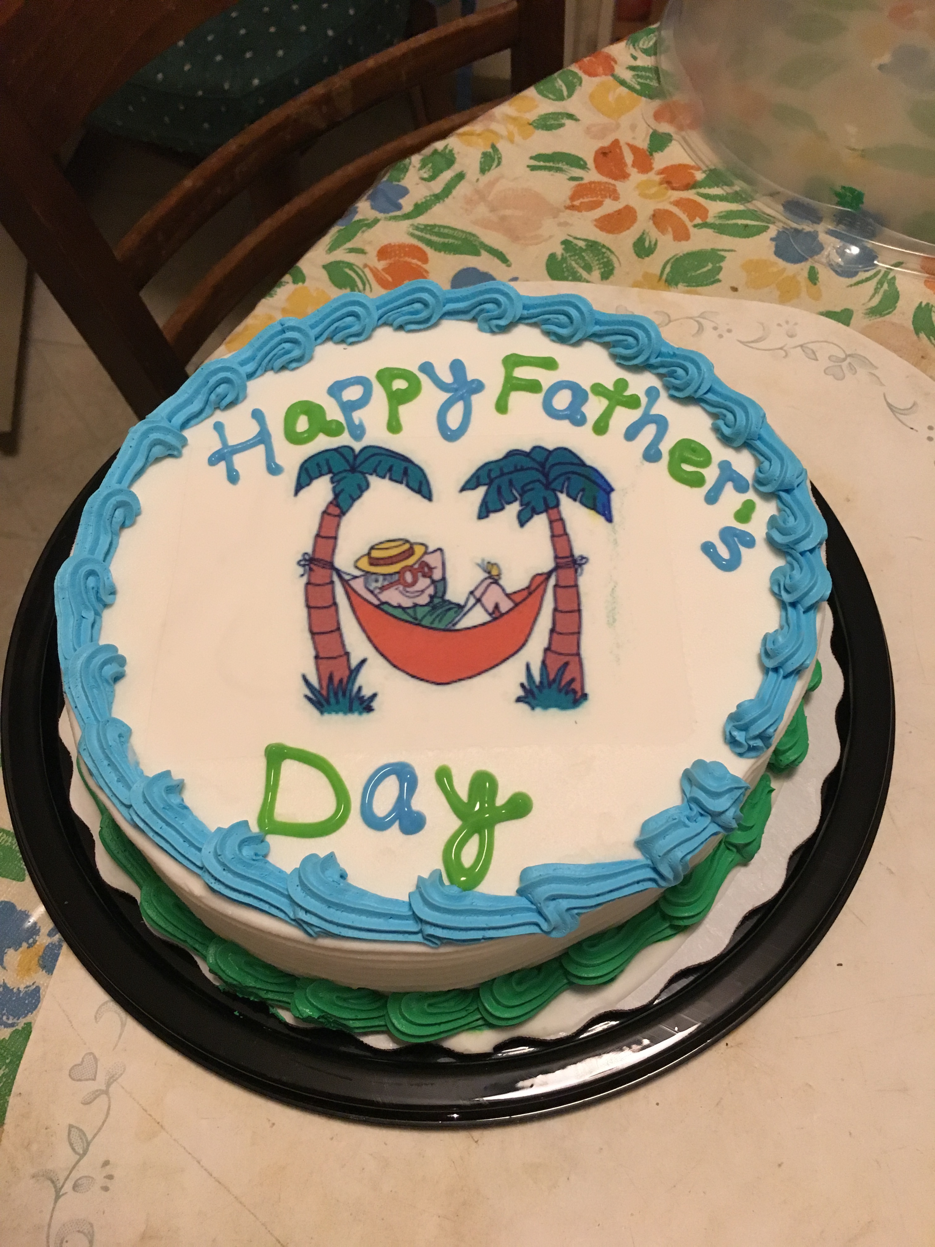 I have videos of my family and parents on my Facebook page which I enjoy viewing a lot. My parents come alive in these videos! Some of these videos on my Facebook page are 8 mm films transformed to videos of my family and little 4 year old me with my father playing his guitar and my mother celebrating Mother's Day and her May 24 birthday! :-) Dad loved going to the Bahamas so I bought Dad this Father's Day cake when he was ill at home.