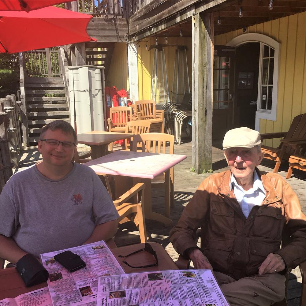 . There used to be a cruise boat that went up and down the Thames River in Springbank Park. My father, sister and I liked vacationing in Collingwood and Blue Mountain, Ontario. Here is a picture of Dad and I at a restaurant in Blue Mountain.