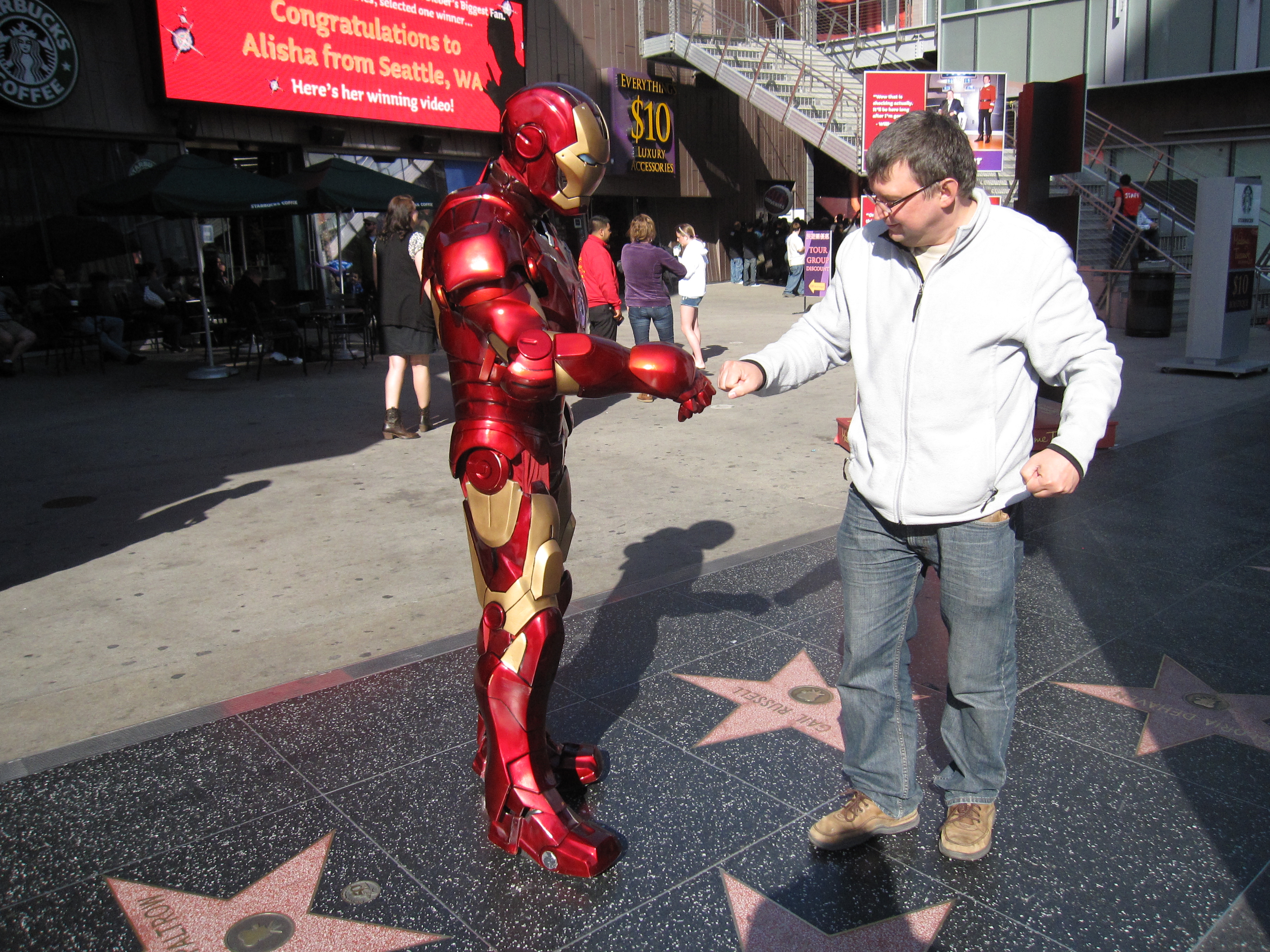 To finish off, here are pictures of me cajoling with my buddy, the superheroe Iron Man in Hollywood, California. Iron Man and I were talking and we want to stop bullying in schools! I was at a conference in San Diego at that time with my good friend Jirasak from Thailand. My friend from Thailand, Jirasak, and I drove up the California coast from San Diego to Los Angeles, stopping along the way at the beautiful Laguna Beach. We also visited Beverly Hills which has a beautiful public library. We drove across the San Diego bridge to Coronado Island and had a beautiful Mexican meal. My burritos were delicious! We ventured and had ribs at the restaurant in San Diego that was featured in the "Top Gun" movie starring Tom Cruise. We finished the evening having beers at a local brewery pub. In San Diego, we stayed at the Keating Hotel that was designed by the designer of the Ferrari sports car. The hallways had plush red carpets and models of red Ferrari cars in glass cabinets embedded in the walls of the hallways. Our hotel room had an Italian Cappucino machine and a pad for charging our iphones.. There was a see-through glass shower in the bedroom of the hotel room. I guess Italians are not shy of their bodies! :-) I have posted on Facebook many pictures from this California trip for public viewing :-)