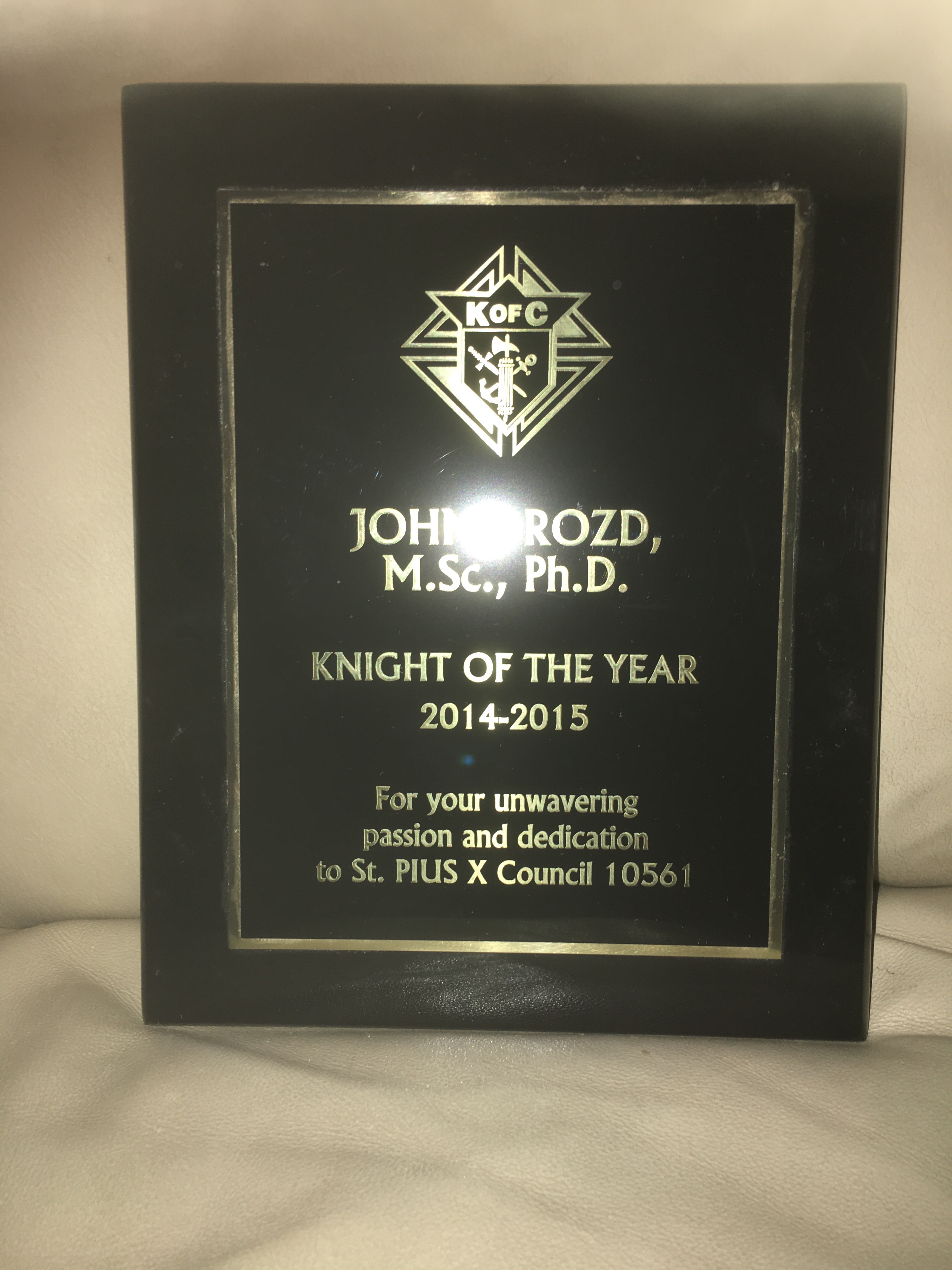 I also enjoy being being Financial Secretary for my Knights of Columbus Council.